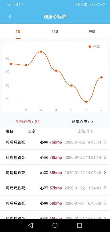 2、所有心电数据以图表形式直观展示,支持历史数据对比分析,便于用户掌握健康趋势;