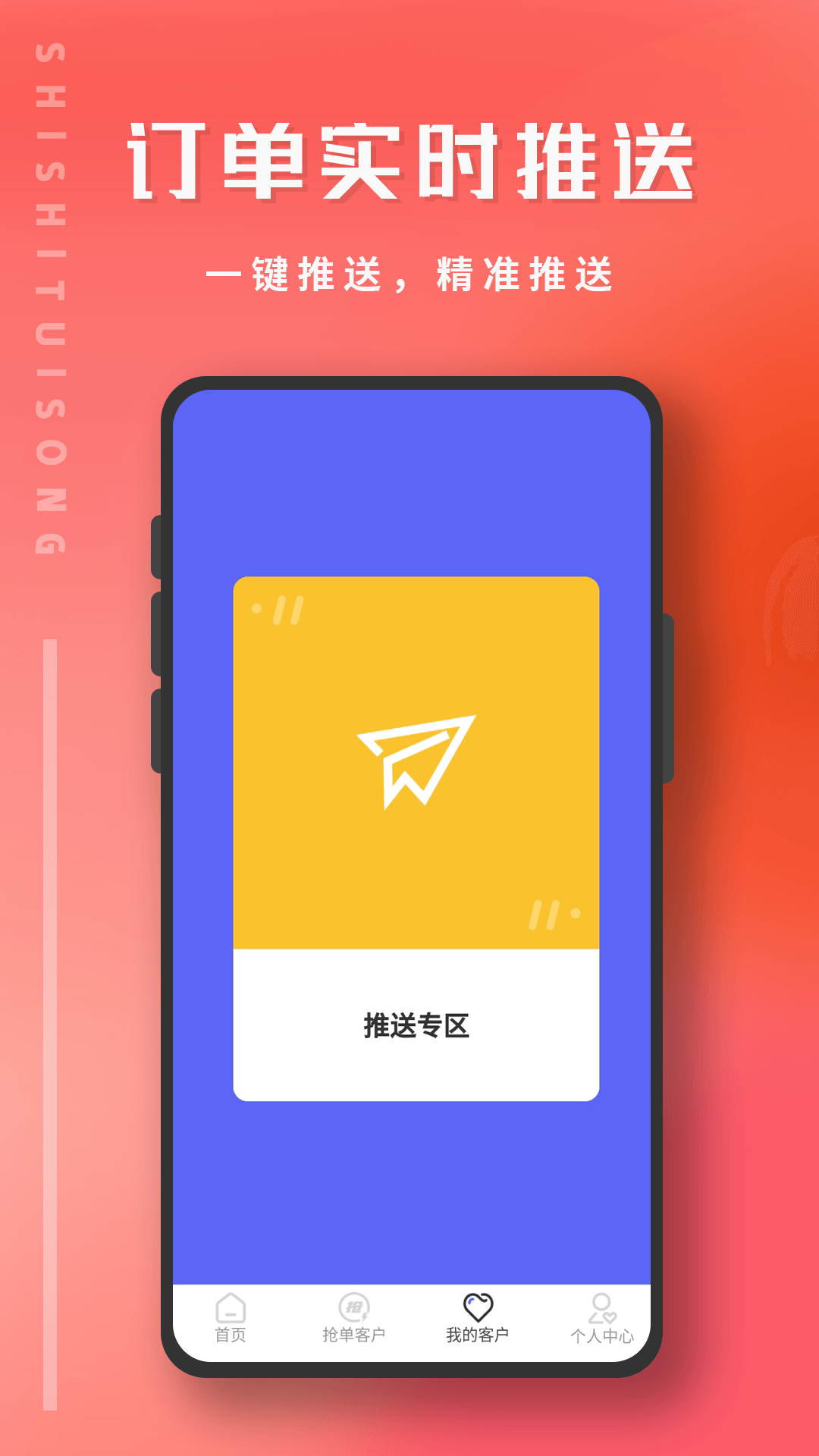 1、客户订单实时推送:系统采用先进的智能匹配算法,可根据用户预设条件实时推送精准客户订单,支持多种推送方式设置,让展业工作更加高效便捷。