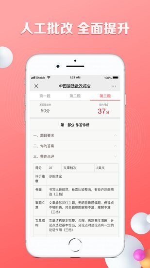 专业教师团队提供人工批改服务,不仅给出分数评定,还会详细标注答题中的问题所在,提供改进建议。通过对比优秀答案范例,帮助学员快速提升作答水平。