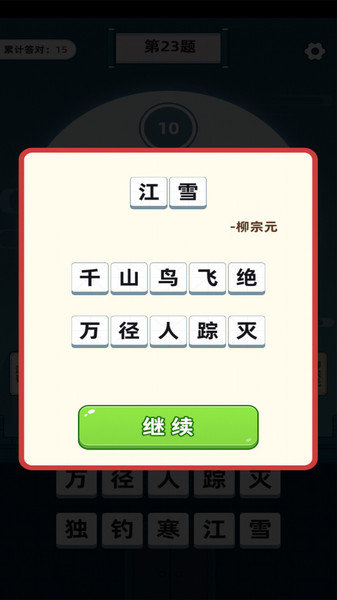 3、每个关卡都设置了提示机会,玩家可以根据需要灵活使用。合理利用提示功能可以帮助克服难关,同时也能学到更多诗词知识;
