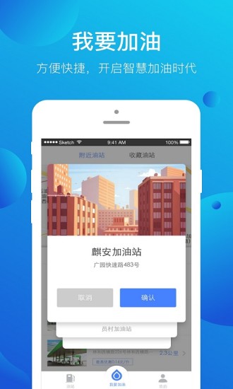 【首页】精心设计的首页界面集合了附近油站、收藏油站、精准定位和智能导航等实用功能入口,让用户快速获取所需信息;