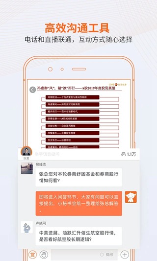 分析师:与500多位券商分析师线上互动,支持私信咨询、直播问答等多种交流方式