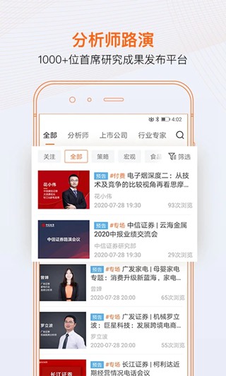 分析师路演:3000+分析师路演,年度策略,高端闭门等路演会议,包含新财富分析师专场等稀缺资源