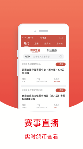最新版本v2.2.1.16对多项功能进行优化升级:全新开发的信鸽艺术照智能处理系统,可自动优化羽毛细节和姿态评分;修复了部分机型在直播竞拍时的卡顿问题;新增足环号模糊查询功能,即使信息不全也能智能匹配相近结果;优化了成绩查询页面的数据可视化展示,新增赛绩趋势分析图表。