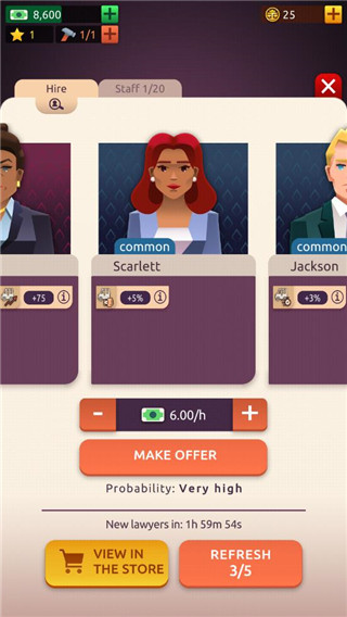 5.复杂的经营系统模拟真实律所运营,从财务管理到人才培育都极具挑战性。