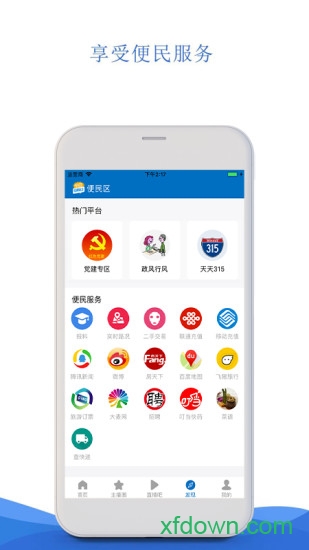 -发现:一站式生活服务平台,涵盖政务办理、消费维权、社区服务等多个领域。与本地商家合作,提供优惠美食资讯。