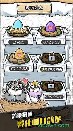 游戏中的扭蛋系统让你有机会获得稀有鸽子蛋,通过精心孵化可以培育出特殊品种的鸽子。这些稀有鸽子不仅能带来更高收益,还拥有独特的视觉效果和技能。每天都有免费抽奖机会,运气好的话还能抽到传说中的金蛋,孵化出超级稀有的黄金鸽子。鸽巢扭蛋并认真孵化ta们,为鸽房带来收益!