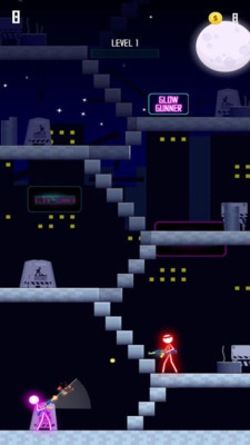 游戏最显著的特点就是角色全身散发着炫目的光芒,在黑暗的背景中格外醒目。这些被称为"枪手"的小人不仅外形酷炫,还拥有强大的战斗能力。玩家需要精准操控这些发光角色,在敌人出现的瞬间快速瞄准射击。每个枪手都有独特的造型和光效,为游戏增添了更多个性化元素。