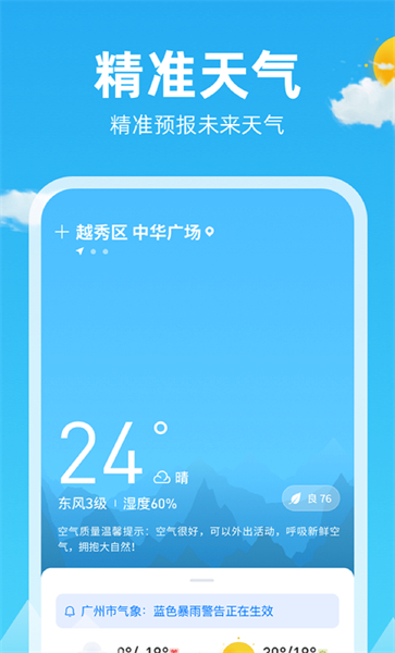 3、全天24小时的天气信息你了如指掌,完全不用担心下雨没有准备,软件每10分钟自动更新一次数据,确保您获取的信息始终是最新的。