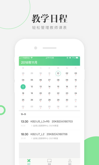 2、教学管理:智能排课系统可轻松管理教师日程安排,支持班级上下课记录和教学进度实时确认;