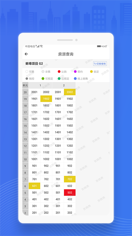 【房源销控】通过手机端即可对房源进行销控管理,包括锁定、释放、变更等操作,操作简单快捷,确保房源信息实时更新,避免重复销售或信息滞后带来的纠纷,让案场管理更加规范高效。