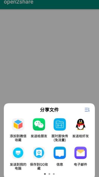 2、选择使用其他的应用打开;在弹出的应用列表中找到open2share图标,点击后应用会自动解析文件信息。