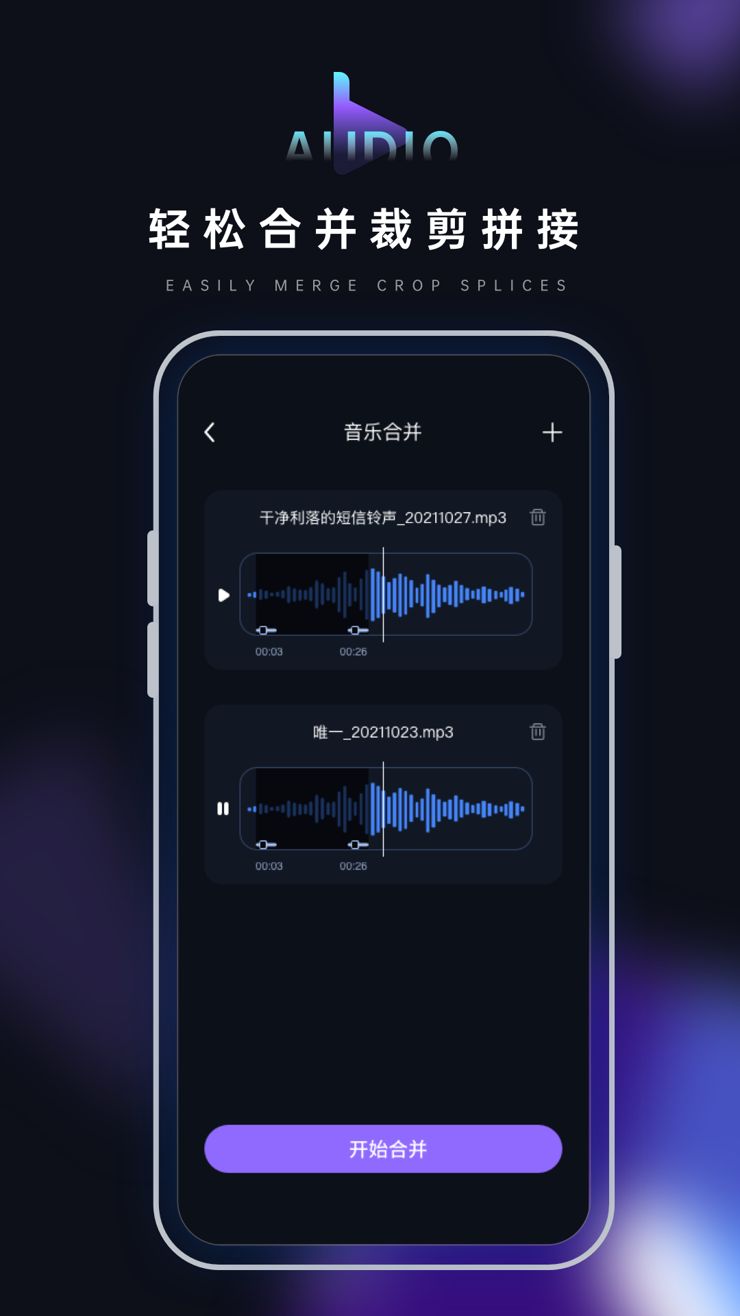 3、轻松合并裁剪拼接:强大的音频编辑工具支持多轨编辑,可以无缝合并多个音频文件,精确裁剪和拼接音频片段。