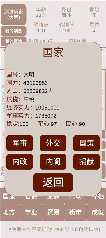 1.游戏以《明实录》《万历野获编》等典籍为蓝本,真实复现了科举取士、赋税制度等历史细节。玩家可亲历张居正改革时期的朝局动荡,参与郑和下西洋的贸易决策,甚至通过动态事件系统触发"土木堡之变"等关键历史节点。不同出身背景会解锁专属剧情线,比如商贾子弟能体验徽商晋商的商帮文化,军户后代则要面对卫所制度的兴衰变迁。