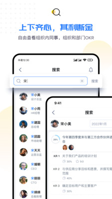 组织架构可视化展示各部门目标关联性,支持跨部门目标对齐和资源协调。同事OKR搜索功能让跨团队协作更顺畅,点赞和评论功能增强团队互动。目标地图功能直观展示公司战略到个人工作的完整传导路径。