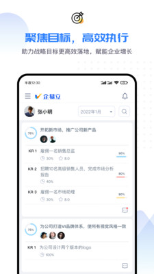 企易立APP是一款专为企业管理打造的高效协作工具,致力于提升团队执行力和战略落地能力。它以OKR目标管理为核心,通过智能化的任务追踪、跨部门协作和实时进度可视化功能,帮助企业实现从战略规划到执行落地的全流程管理。无论是管理层制定季度目标,还是员工分解个人关键结果,企易立都能提供清晰的工作路径和协作支持。其创新的通知系统和数据看板让团队始终保持目标一致,在快节奏的商业环境中快速响应变化,真正实现"目标引领行动,数据驱动决策"的管理理念。
