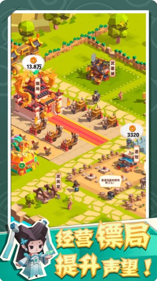 3、建筑升级系统:玩家可以通过消耗金币来升级镖局内的各种建筑。每座建筑升级后不仅能提升功能效果,还会获得更加精美的外观,让玩家的镖局越来越气派。