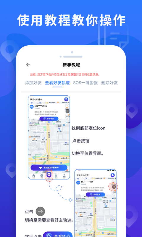 2、完善的社交定位系统,可自由添加家人朋友,建立专属关爱圈,随时查看彼此位置,让关心不再受距离限制。