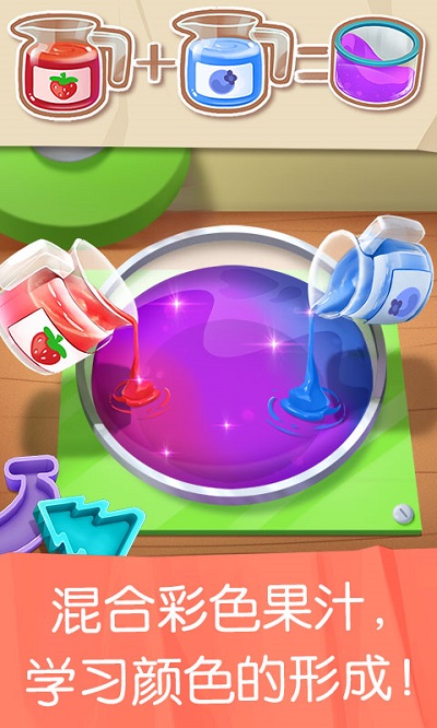 【炫酷机器】游戏内配备多种趣味机器,如自动搅拌机、果酱注射器、急速冷冻柜等,让孩子了解食品加工原理;