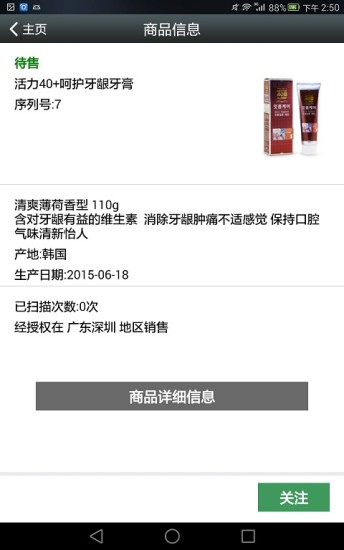 本应用采用深圳市唯一码科技有限公司独家研发的二维码防伪系统,每个认证商品都配有独一无二的加密二维码。扫描后系统会进行三重验证:首先核对二维码有效性,其次验证商品备案信息,最后检查流通渠道合法性。验证通过的商品会展示详细的产品参数、生产日期、质检报告等20余项信息,并可直接跳转至品牌官方商城。对于异常二维码,系统会智能区分"未备案商品"、"已注销码"、"重复查询"等不同风险类型,并给出针对性的消费警示。所有查询记录都会加密保存,方便用户随时查看历史鉴别记录。