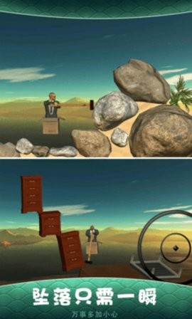 1、极致搞笑的关卡冒险,玩家需要靠一个锤子来进行攀岩,非常的搞笑。角色的滑稽动作和夸张的物理效果,为游戏增添了不少喜剧元素;