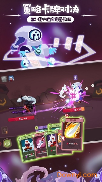 你需要对抗40多种各具特色的怪物和boss,组件你的卡组,运用你的策略去挑战他们。精心设计的怪物AI会针对玩家阵容做出智能应对。