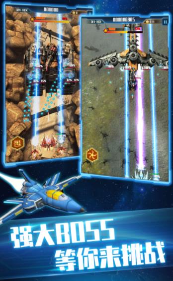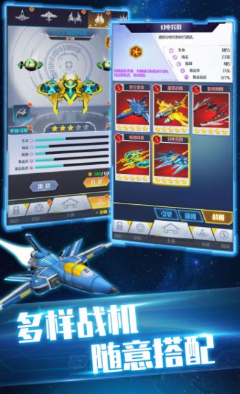 1.游戏提供三种造型炫酷、性能各异的战机选择,玩家可以通过战斗收集紫晶资源来升级武器系统,打造专属的强力战机!
