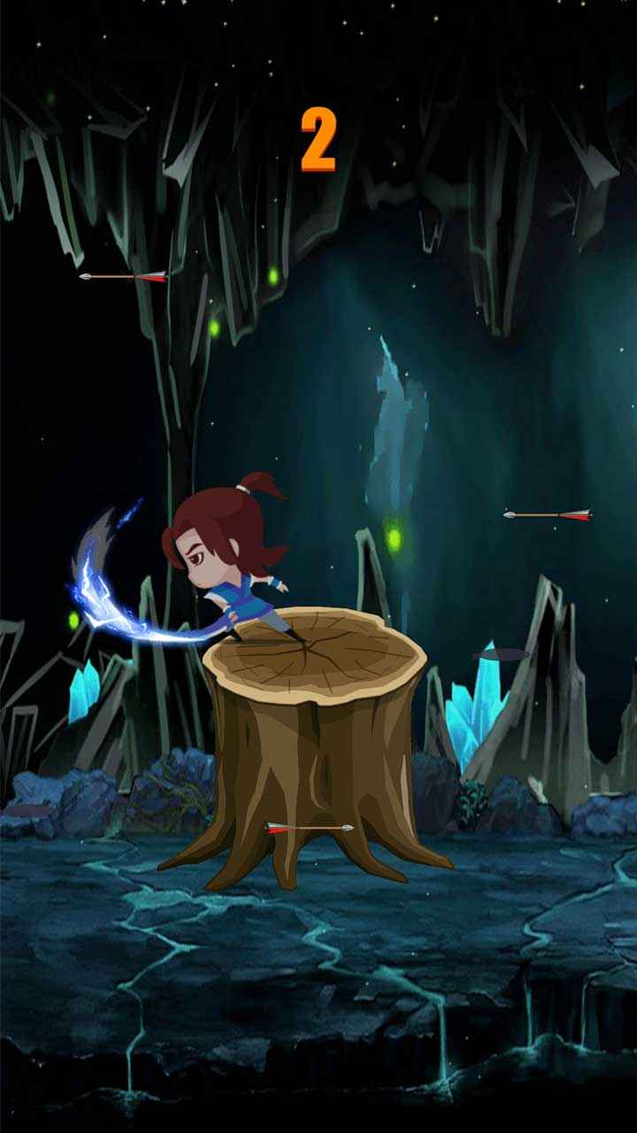 左右点击屏幕砍掉屏幕两边出现的弓箭。游戏采用独特的双屏防御机制,玩家需要同时关注左右两侧的威胁,考验反应速度和双手协调能力。