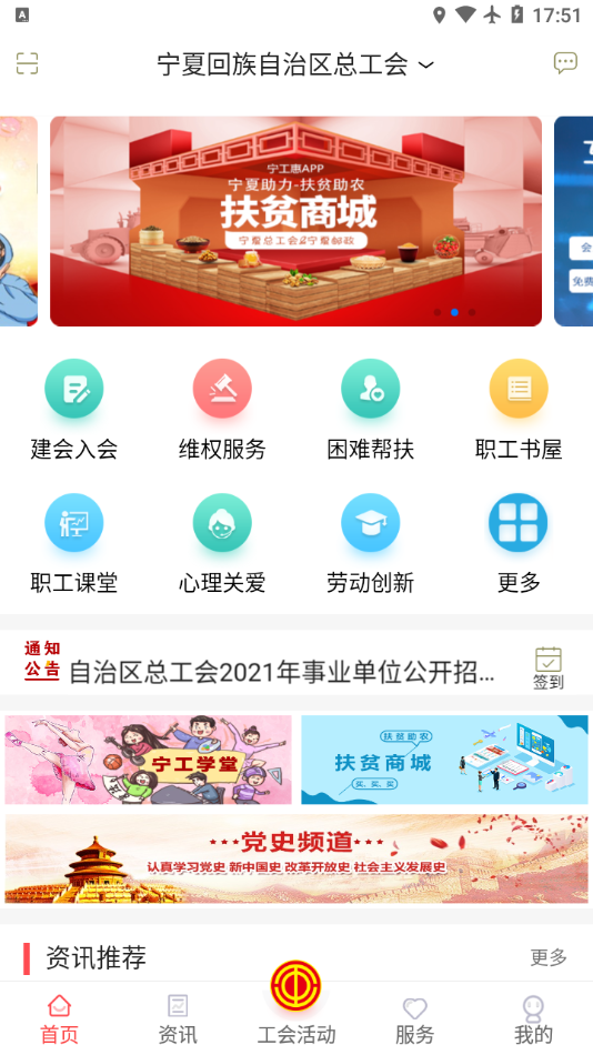 宁工惠app是由宁夏总工会官方打造的一站式职工服务平台,致力于为工会会员提供便捷高效的服务体验。该应用整合了建会入会、困难帮扶、普惠活动、维权援助、就业服务、劳动保护等多项核心功能,通过数字化手段全面提升工会服务水平。无论是日常办事还是生活需求,会员都能在这里找到专业贴心的解决方案,真正实现"指尖上的工会服务",让职工享受更智能、更温暖的组织关怀。