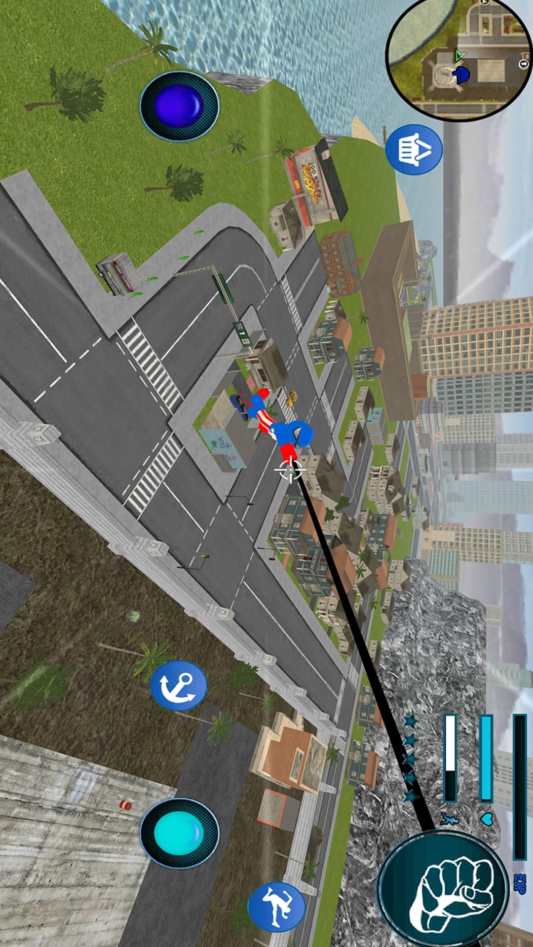 1、游戏采用独特的物理摆荡机制,玩家需要通过精准计算抓钩发射角度和时机,在城市天际线间完成华丽的高空特技;