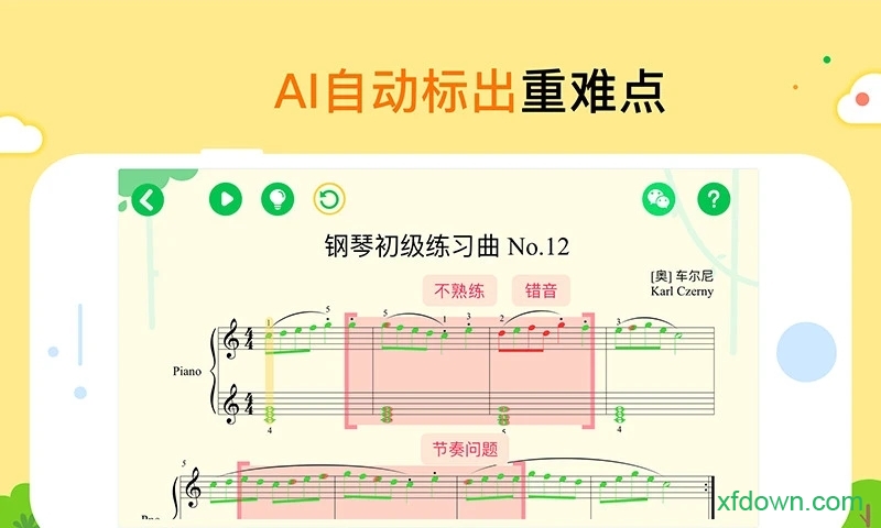 在自主练习模式下,系统会全程监测演奏过程,对每个音符进行精准识别和评分,帮助孩子及时发现并改正错误。通过反复练习和即时反馈,快速提升演奏准确度,建立良好的音乐表现力。