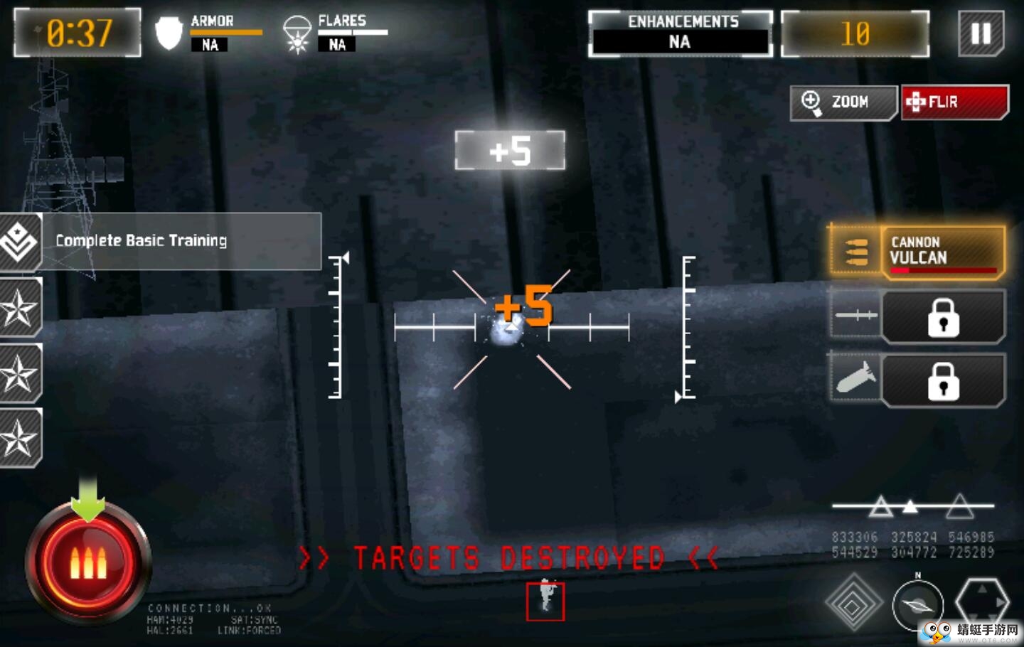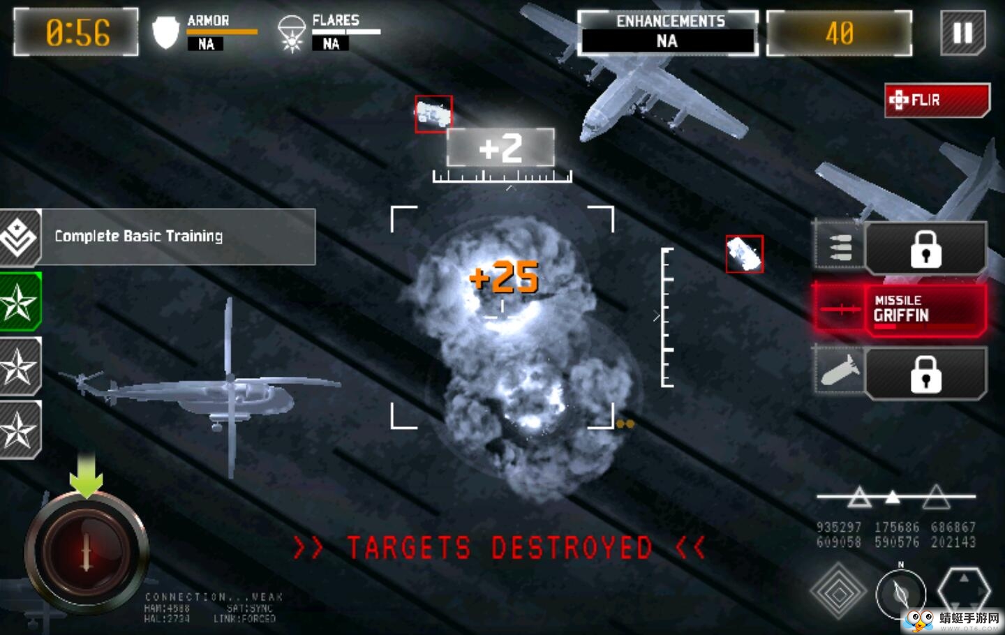 本作在模拟真实与游戏性之间取得了完美平衡,夜视模式下的黑白画面配合动态光影营造出紧张的战斗氛围。独创的武器过热系统要求玩家把握射击节奏,而智能导弹的自动锁定功能则简化了复杂操作。防御系统设计尤为出彩,玩家可以发射拦截导弹对抗地面防空火力,这种设定虽然带有科幻色彩但极大提升了游戏爽快感。养成系统深度十足,从机身装甲到火控雷达均可升级,不同配件组合能衍生出多种战术流派。