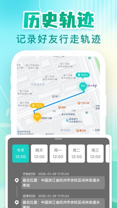 1.实时定位追踪:用户通过绑定目标设备的手机号或账号,可在电子地图上实时查看对方位置,定位精度可达10米以内。支持多目标同时显示,并自动刷新位置信息,适用于追踪儿童、老人或外出旅行的亲友。系统采用智能刷新策略,根据移动速度自动调整定位频率,步行时每30秒更新一次,驾车时提升至10秒/次,确保位置信息的时效性。地图界面支持3D建筑显示和街景切换,让定位更加直观准确。