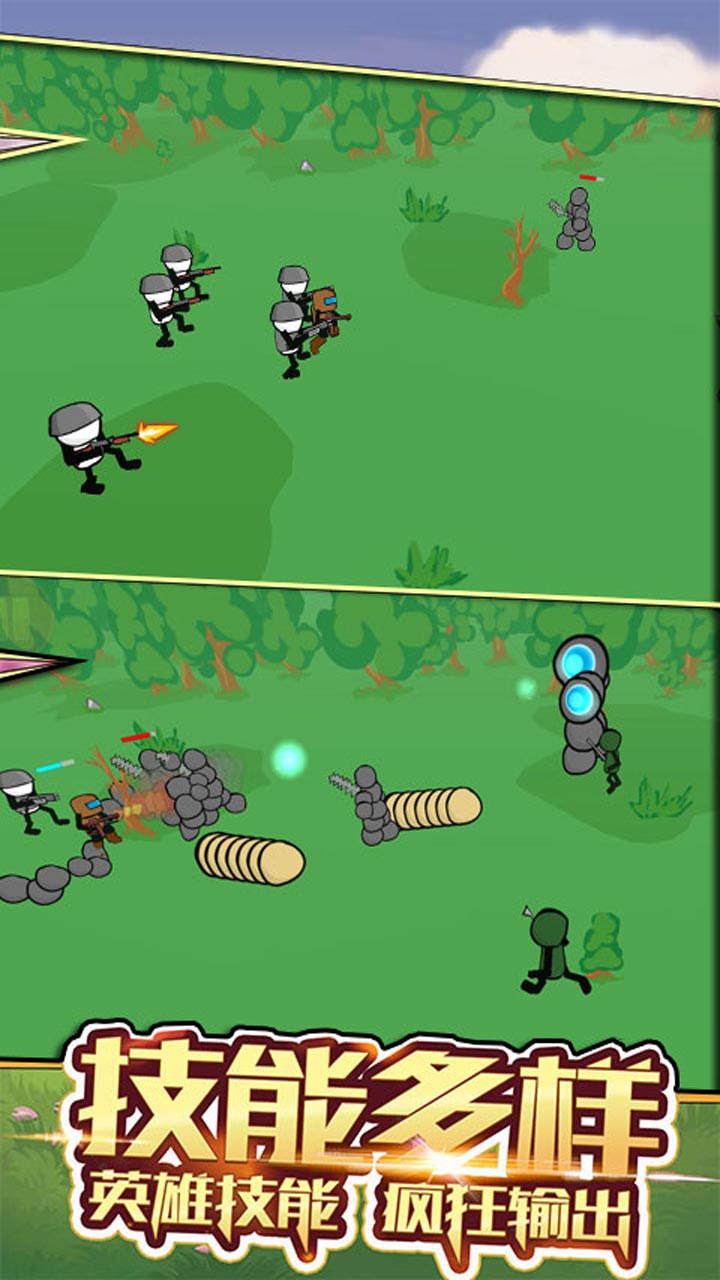 《火柴人主宰战场》是一款融合策略与动作元素的战争游戏,玩家将化身指挥官,在充满火柴人风格的战场上展开热血对决。游戏不仅提供丰富的兵种系统,从基础的矿工到强大的巨人,每个单位都拥有独特技能和作战风格。通过资源收集、军队培养和战术部署,玩家需要组建一支所向披靡的火柴人军团。多样化的地图和实时战斗机制,让每场战役都充满变数,考验玩家的即时决策能力。独特的简约画风搭配动态战斗特效,为经典的火柴人题材注入了全新的视觉冲击力。