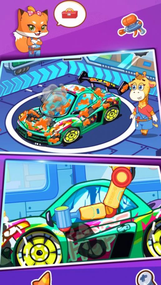 3、游戏提供了更加精致的3D修理画面,新增了趣味十足的洗车小游戏,以及针对不同车型的专属保养方案,让维修过程充满变化和惊喜。