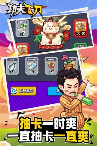 功夫飞刀是一款融合了无厘头搞笑风格与策略战斗的休闲手游,玩家将化身飞刀高手,在充满恶搞元素的关卡中展开冒险。游戏不仅提供了丰富的武器系统,从传统飞刀到奇葩的拖鞋、大葱等道具应有尽有,还加入了抽卡养成、挂机收益等趣味玩法。穿越不同时空的章节设计让玩家邂逅包租公、雷神等经典角色,而创新的武器碰撞机制则让战斗充满策略性。无论是想体验轻松挂机收菜,还是挑战高难度BOSS战,这款游戏都能满足你的需求。