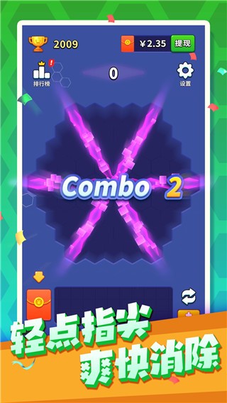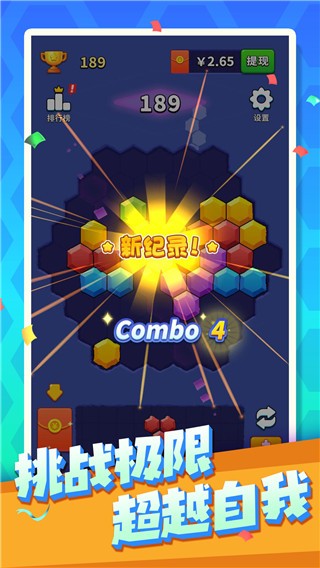游戏最突出的亮点是其直观易懂的规则设计,新手教程简明扼要,让玩家在几分钟内就能掌握所有操作要领。拼图设计独具匠心,六边形方块可以360度旋转,为消除过程增添了更多策略性和趣味性。红包奖励系统设计合理,既有日常小额红包维持玩家活跃度,也有高难度挑战的大额红包激励玩家不断突破。游戏还定期更新节日活动和限时玩法,保持内容的新鲜感。画面采用清新明亮的配色方案,搭配轻松愉悦的背景音乐,为玩家营造出舒适放松的游戏氛围。