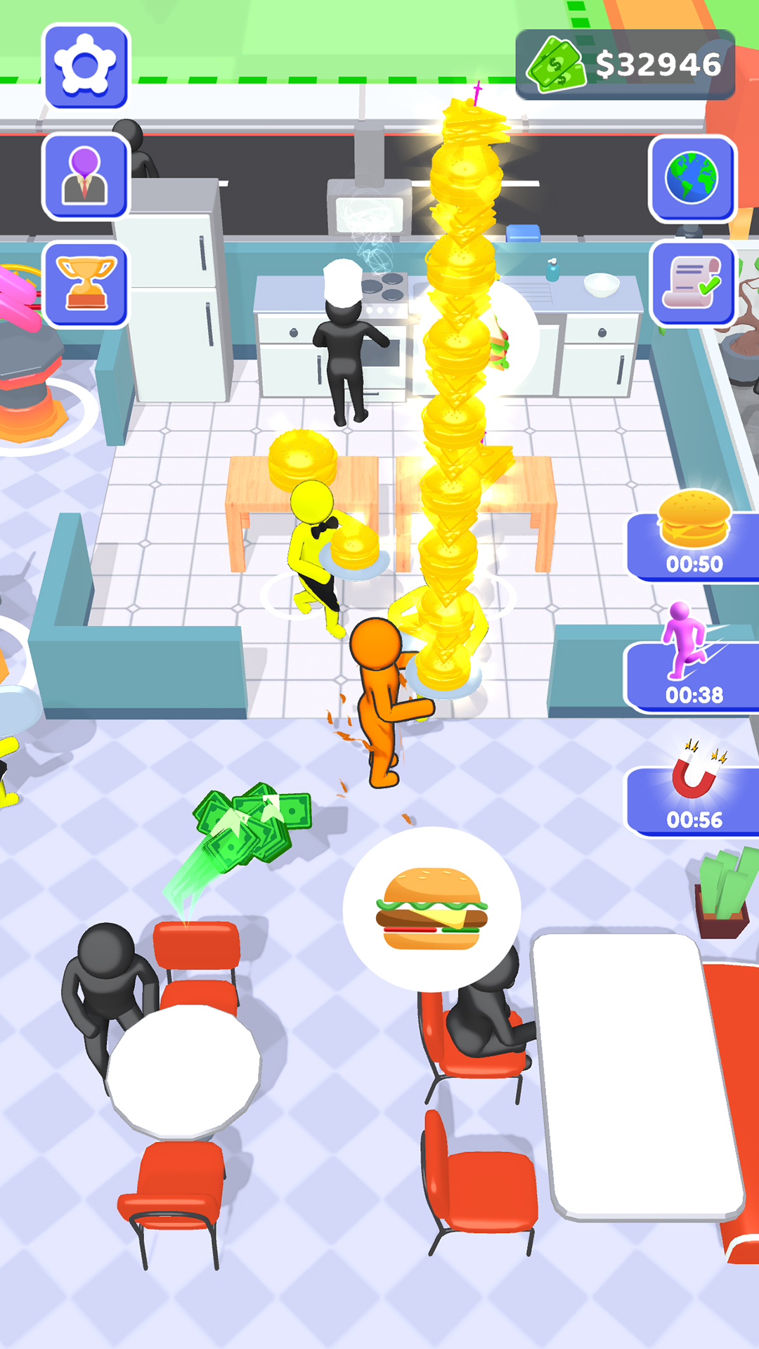 游戏的核心玩法围绕餐厅经营展开。你可以通过完成订单赚取资金,逐步扩大餐厅规模,增加座位数量,升级厨房设备。随着等级提升,还能解锁更多特色餐厅,如甜品店、寿司店等。雇佣不同特长的服务员能显著提升工作效率,比如有的擅长接待VIP客人,有的能加快上菜速度。最有趣的是可以参与城镇美食大赛,与其他餐厅老板一较高下。游戏还加入了社交元素,可以和好友互访餐厅,交换稀有食材,甚至合伙开店。通过精心经营,你的餐厅最终将成为城镇的美食地标!