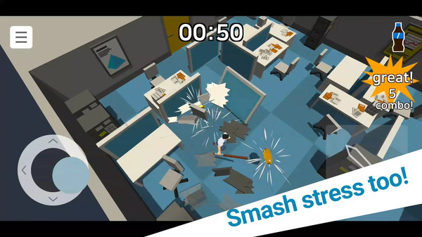 1、尽情的破坏你看到的一切,将办公室里的东西都打碎。从打印机到饮水机,从文件柜到电脑设备,所有让你不爽的办公用品都可以成为发泄对象。