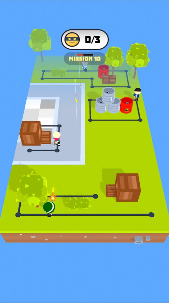 2、有种有着各种阻碍将会阻挡玩家进行射击,玩家需要利用道具和墙面的反射通过关卡。关卡中设置了可破坏的障碍物、反弹墙等特殊地形元素,玩家需要巧妙利用这些特性完成击杀。比如可以通过墙面反弹射击躲在掩体后的敌人,或是击碎玻璃制造新的射击线路。