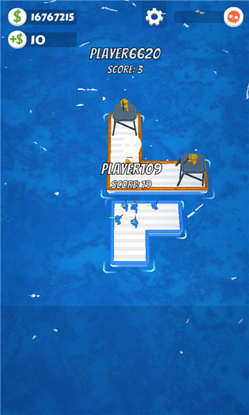 木筏战争免广告版下载这是一款充满创意与激情的海上生存射击游戏,玩家将扮演橡皮人指挥官,在浩瀚海洋中展开一场别开生面的木筏争夺战。游戏采用独特的橡皮人画风,搭配紧张刺激的战斗玩法,让你体验前所未有的海上冒险。你需要不断收集漂浮在海面上的零件来扩建木筏,同时招募更多橡皮人士兵加入你的阵营。通过策略布局和精准射击,与其他玩家展开激烈对抗,最终成为这片海域的霸主。游戏完美融合了生存建造与射击对战元素,带给你双重的游戏乐趣。