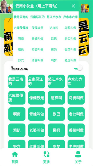 云南小伙原声素材播放:所有语音都采用云南小伙本人的原声录制,保证原汁原味的方言韵味和搞笑效果。