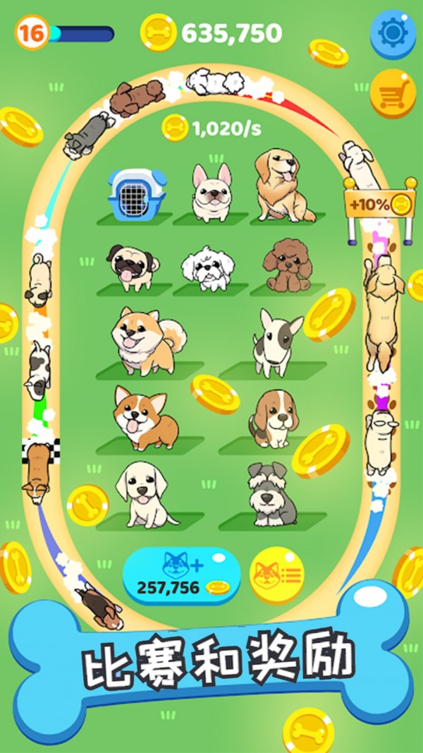 4、独创的狗狗合成玩法带来策略乐趣,通过智慧搭配相同品种的幼犬,可以培育出拥有特殊花纹的高级犬种,每只新狗狗都会为小屋带来独特的装饰风格。