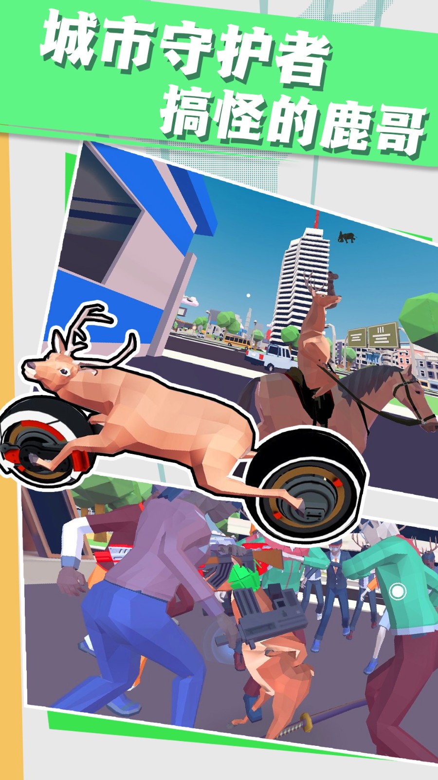 1、游戏采用夸张的卡通物理效果,小鹿的每个动作都会引发连锁反应。无论是撞飞一群警察还是被起重机吊到半空,这些荒诞场景都经过精心设计,保证让你笑到肚子疼。
