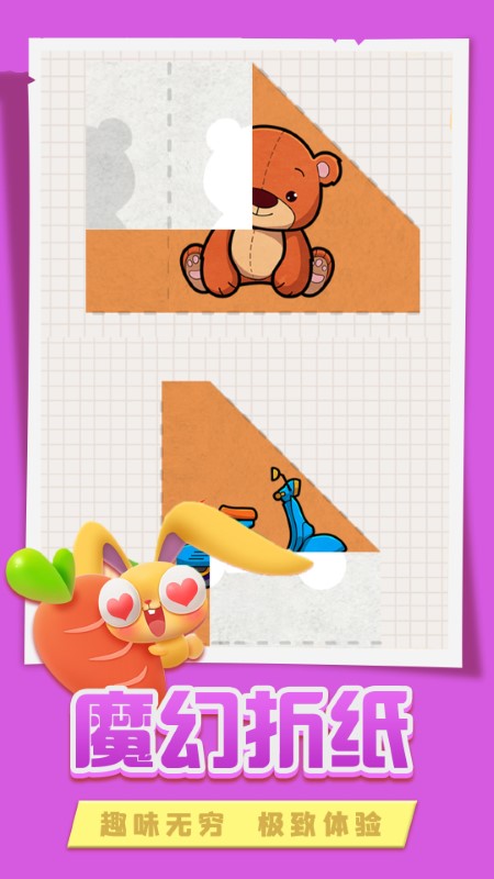 折纸小姐姐最新版是一款专为手工爱好者打造的创意折纸游戏。在这里,你可以探索从简单到复杂的各种折纸艺术,通过生动直观的教学方式掌握折纸技巧。无论是传统的千纸鹤、玫瑰花,还是创意十足的立体动物、节日装饰,都能让你在指尖感受纸张变形的神奇魅力。游戏特别设计了循序渐进的难度系统,让初学者也能轻松入门,同时为资深玩家准备了富有挑战性的高阶作品。每天更新精选教程,让你随时发现新的折纸乐趣。