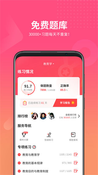 山香网校是山香教育集团倾力打造的在线教师考试备考平台,致力于为全国教师考生提供专业、高效的学习支持。随着教师职业吸引力不断提升,教师资格证和教师招聘考试的竞争也日益激烈。这款APP正是针对这一需求,整合了海量优质教育资源,包括系统化课程体系、权威师资团队和智能化学习工具。平台覆盖教师资格证笔试面试、教师招聘考试等全流程备考内容,通过1对1学习跟踪、智能题库训练、全国模考排名等功能,帮助考生科学规划学习路径。无论是零基础学员还是需要冲刺提分的考生,都能在这里找到适合自己的学习方案,突破考试瓶颈,实现教师梦想。