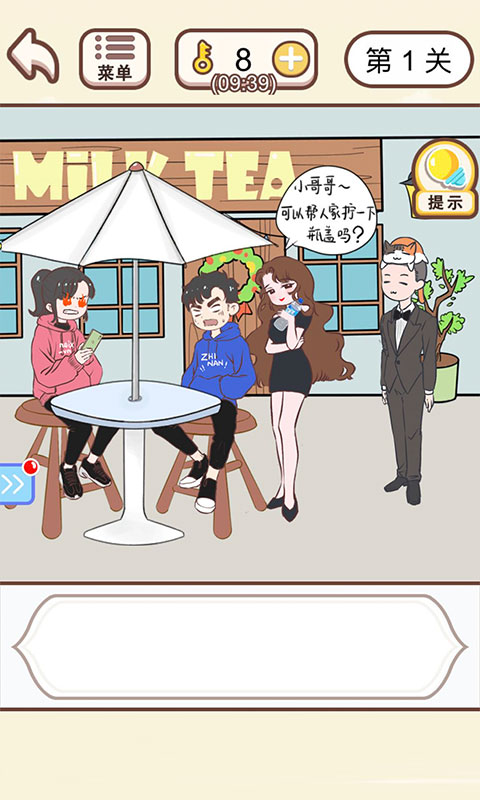 第七关:分别点击男女主角的手机拾取,然后进行交换:将女主角手机给男主角,男主角手机给女主角。