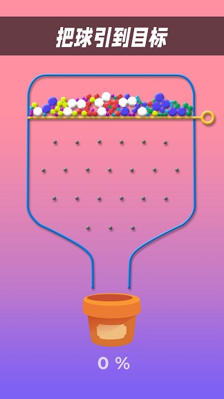 游戏核心玩法围绕"拔针引导"展开,玩家需要保护尽可能多的小球完成染色任务。关卡开始时,彩色小球会从顶部出现,玩家要通过拔除特定位置的插销来改变路径走向。每个插销的拔出顺序都至关重要,错误的操作可能导致小球掉落或被染色失败。游戏特别设置了"撤销"功能,让玩家可以回退步骤重新规划路线。随机出现的炸弹元素增加了游戏变数,玩家需要眼疾手快地操作机关进行躲避。成功通关需要让所有小球完成染色并准确落入底部收集器,这种多目标设定大大提升了游戏的可玩性。