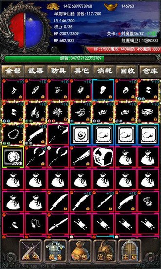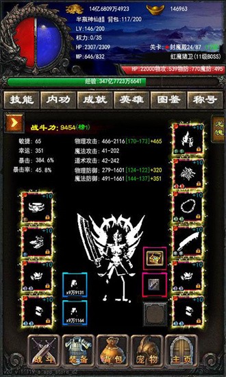3、游戏拥有丰富的装备系统,通过战斗可以获取更多极品武器,这些装备不仅能提升角色属性,还能改变战斗风格。收集稀有装备打造最强战神。