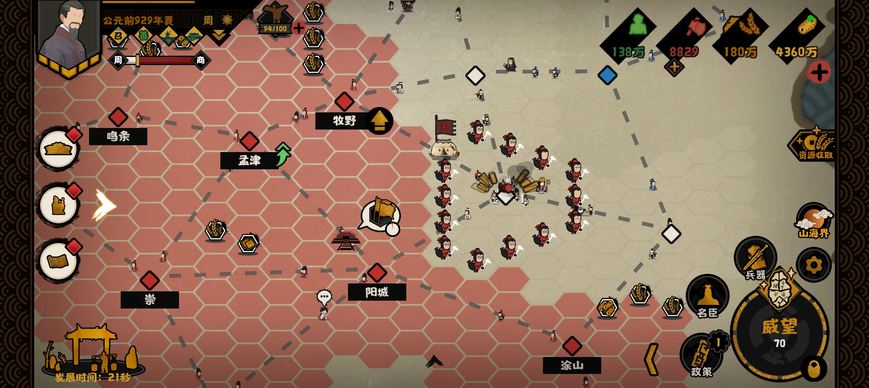 作为游戏初期剧本,三皇五帝时代需要特别注意发展策略。推荐选择轩辕阵营开局,优先建造战力祭坛并合理分配探索队伍。名臣搭配应以战力加成为核心,民生位选择扁鹊或李冰保障基础资源,军事位推荐力牧提升早期战斗力。外交策略上要避免腐败流玩法,集中资源快速消灭九黎和东夷两大对手。科技树优先点军事路线,适当补充政治类科技缓解资源压力。地图探索时注意敌方动向,九黎通常向上扩张而东夷向左发展,利用这个规律可以提前布局防御。中期转种田发育时,要把握战力压制和资源积累的平衡点。